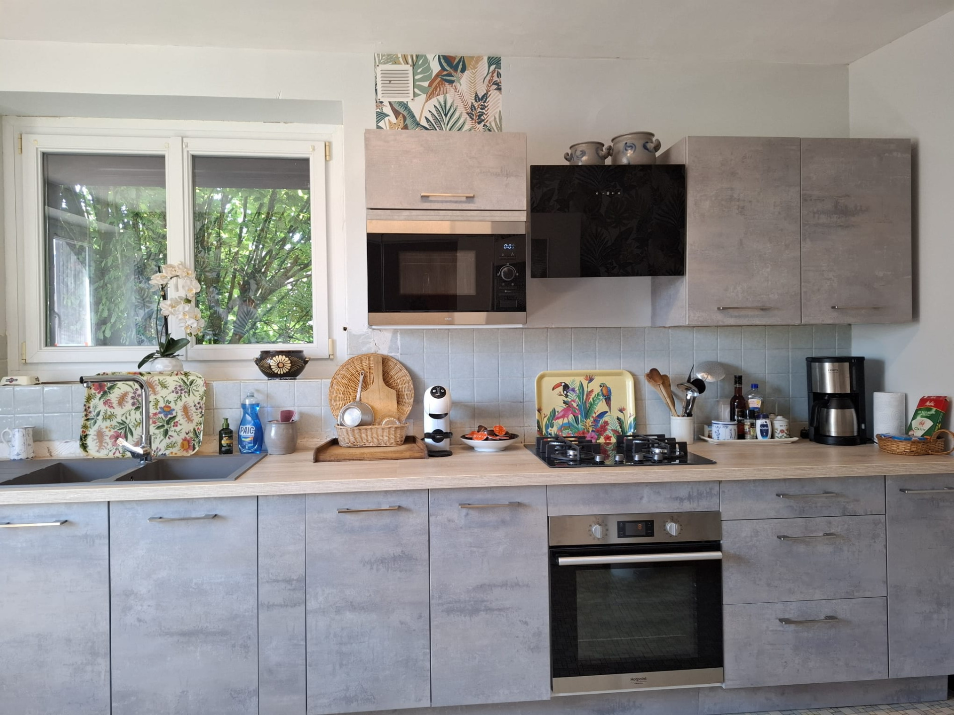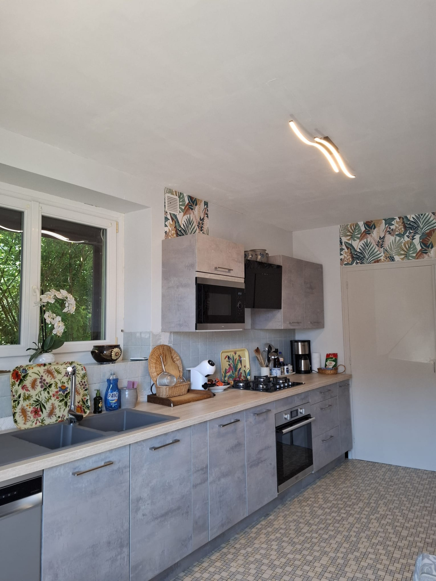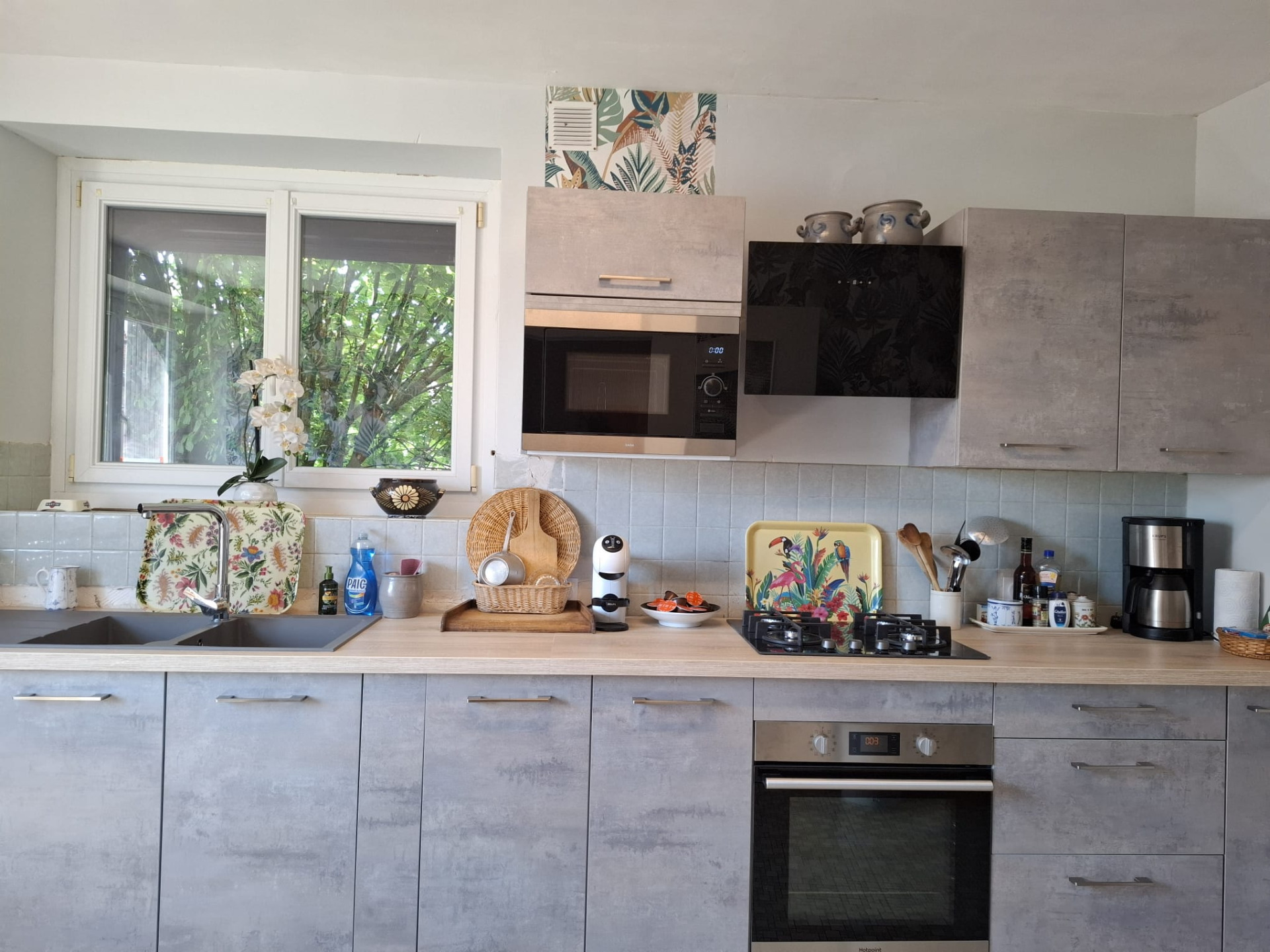 - Une cuisine neuve entièrement équipée (four, plaques, frigo, micro-ondes, vaisselle, cafetière, etc.)