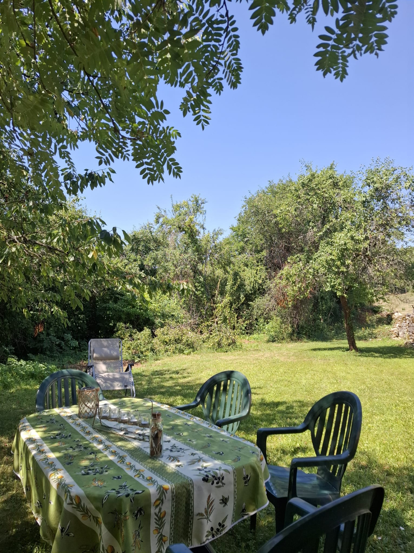 Le jardin, sans vis-à-vis, est idéal pour les repas en plein air, les